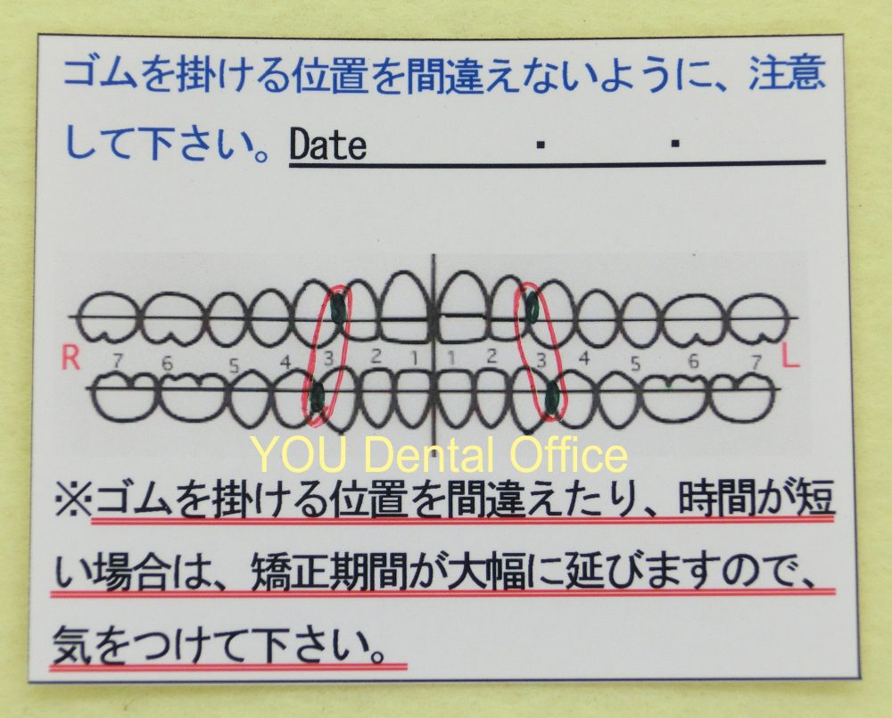 次の予約までの数週間に、もし間違った部位にゴムをかけていた場合、予想外の歯の移動が行われてしまうことになり、治療が上手く進みません。どの部位にゴムをかけるのかは、とても重要です。